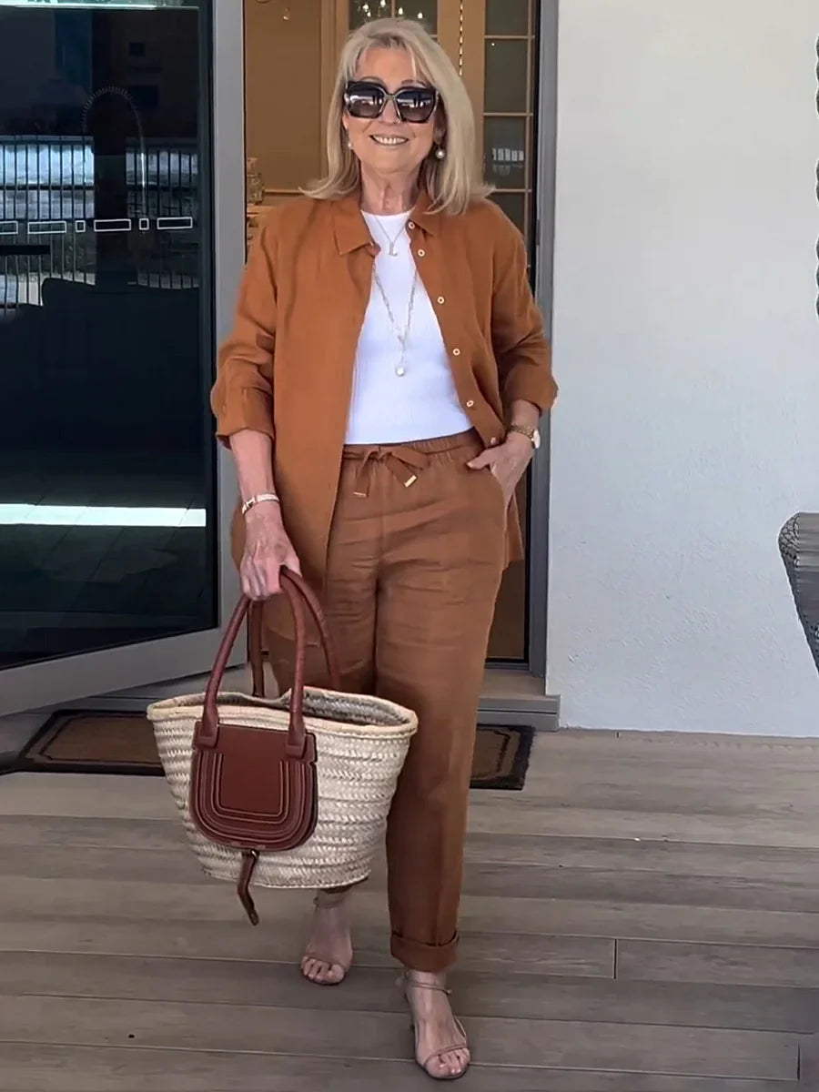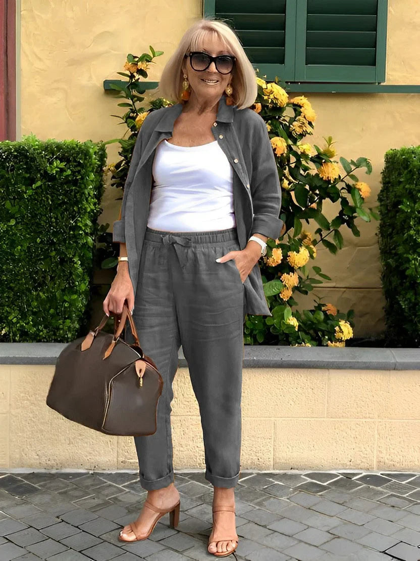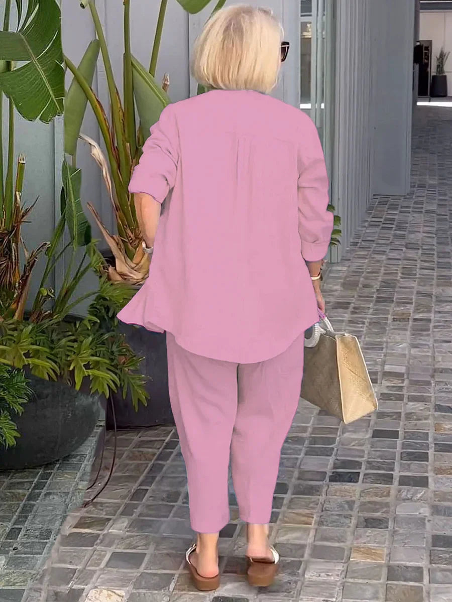 Long Sleeve Button Shirt & Minimalist Two-piece Set