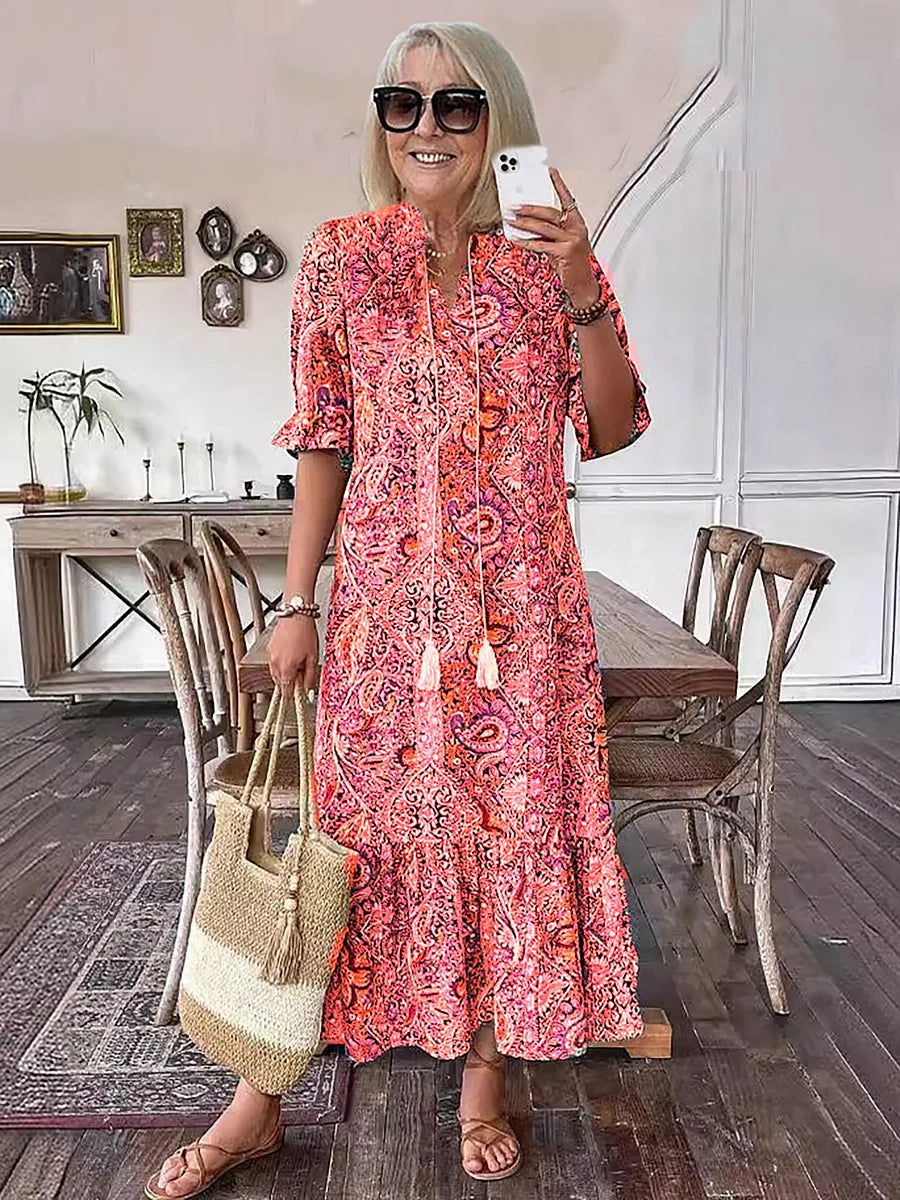 Boho-Chic Vintage Graphic Printed Dress