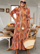 Step into a world of effortless elegance with the Bohemian Vintage Tassel Tie Dress—a vibrant, vintage-inspired piece that speaks to your free-spirited, confident side. Whether you’re heading to a sunny getaway, brunch with friends, or a leisurely stroll, this dress ensures you stand out with its bold boho charm. This dress is as effortlessly comfortable as it is visually striking, ensuring you turn heads and capture attention wherever you go.