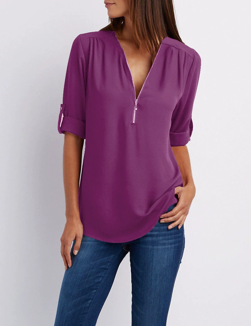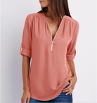 Say goodbye to shapeless cuts, unflattering fits, and tops that feel uncomfortable or limit how you style your look. With its modern V-neckline, chic zipper detail, and relaxed yet feminine silhouette, the Zenya instantly elevates your wardrobe. Whether it’s a busy day at the office, a casual afternoon with friends, or an evening where you want to shine with effortless sophistication, this top gives you the confidence to look polished and feel comfortable.